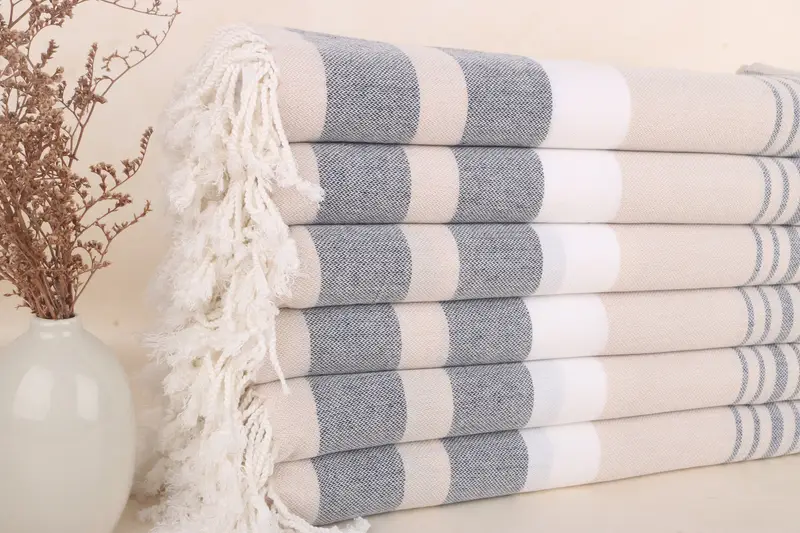 Custom Turkish Towel Beige-Navy Striped, Organic Cotton, 40x71 Inches