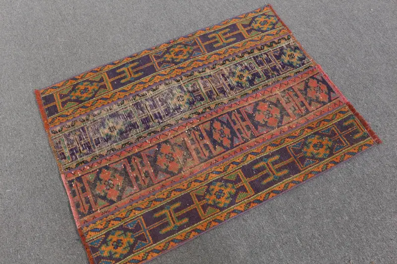 Vintage Turkish Small Rug 2.8x3.7 ft (85x112 cm), Purple Abstract Rug