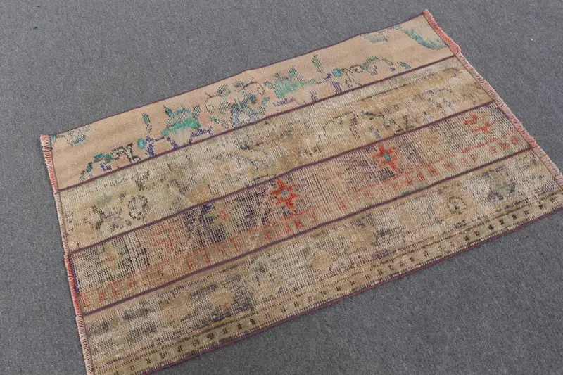 Vintage Small Rug 2.6x4.2 ft (78x127 cm), Brown Check Turkish Rug
