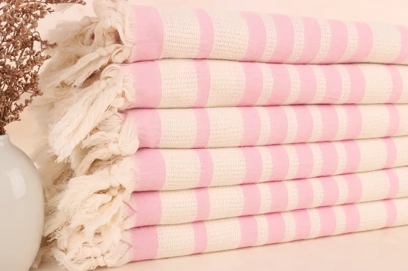 Custom Turkish Towel Pink Striped, Organic Cotton, 34x71 Inches