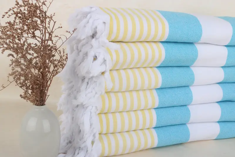 Personalized Terry Towel Turquoise-Yellow Stripes, 36x67 Inches