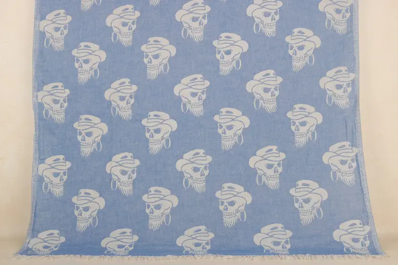 Personalized Blue Skull Patterned Turkish Beach Towel, 36x71 Inches