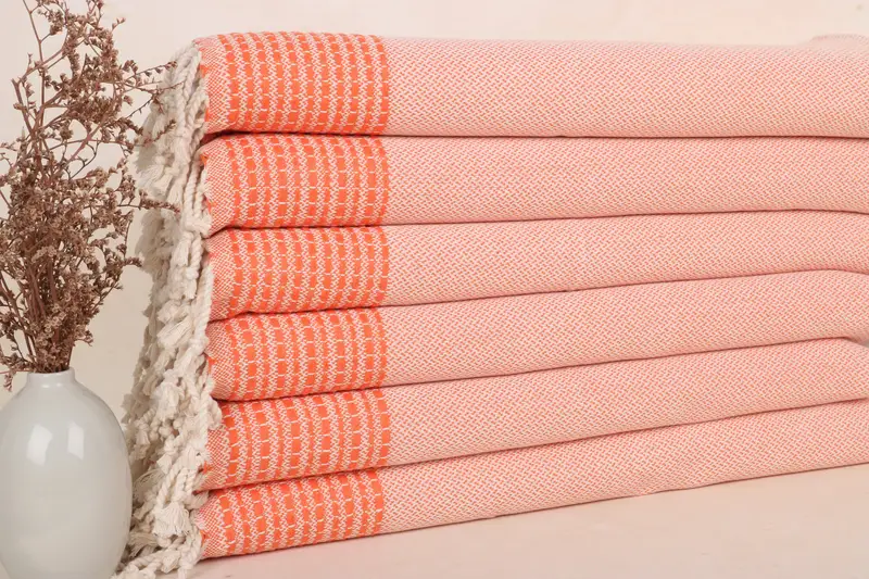 Orange Cotton Tea Towel Turkish Handwoven, 20x40 Inches