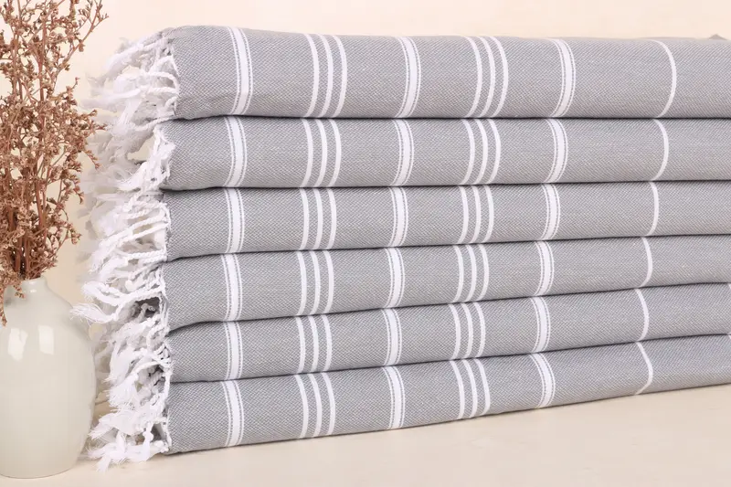 Dark Gray Cotton Dish Towel Handwoven, Beige Accent, 24x40 Inches
