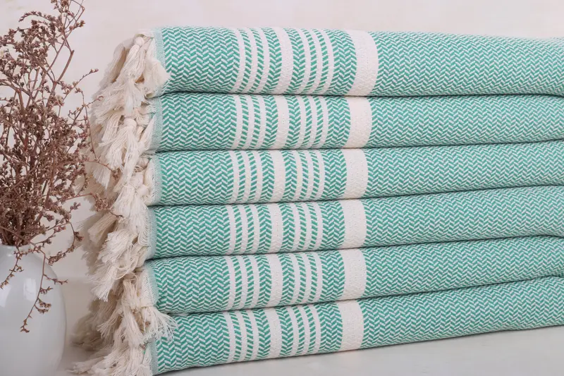 Turkish Cotton Kitchen Towel Green Beige Stripes, 18x40 Inches