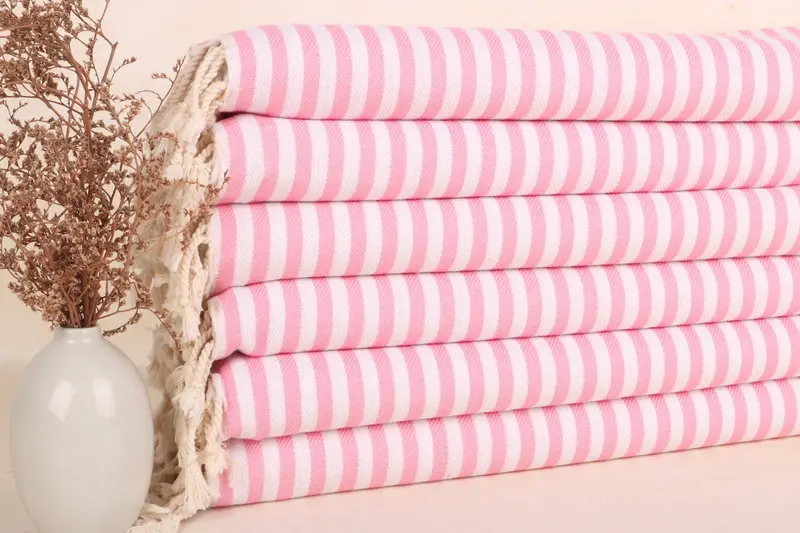 Pink Cotton Hand Towel Monogrammed Striped, 18x40 Inches