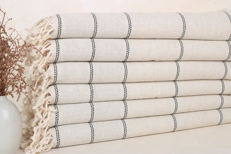 Beach Towel Monogrammed Turkish Cotton Light Gray Stripes, 20x40 Inches