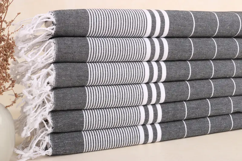Custom Embroidered Hand Towel Black Striped, 24x40 Inches, Kitchen & Tea Towel