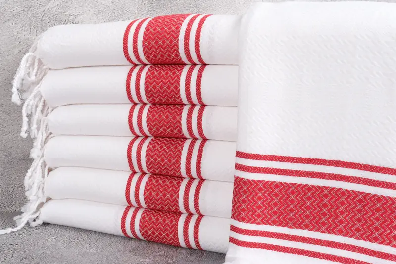 Beach Towel Turkish Cotton Red Stripes Beige, 40x71 Inches