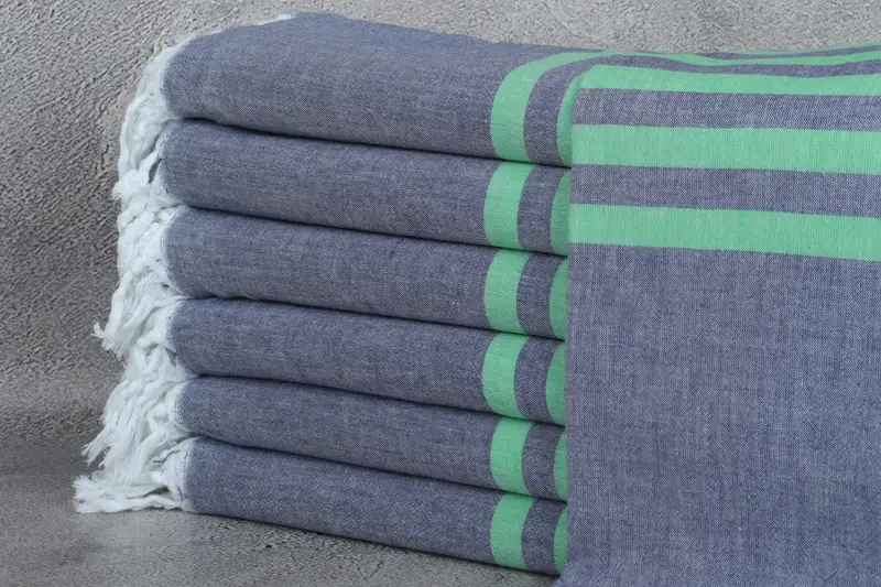 Turkish Towel Beach, Green-Navy Striped Peshtemal, 36x71 Inches
