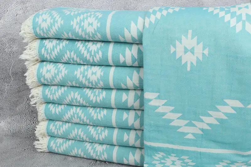 Kilim Towel Petrol Blue Organic Cotton Beach Towel, 36x71 Inches