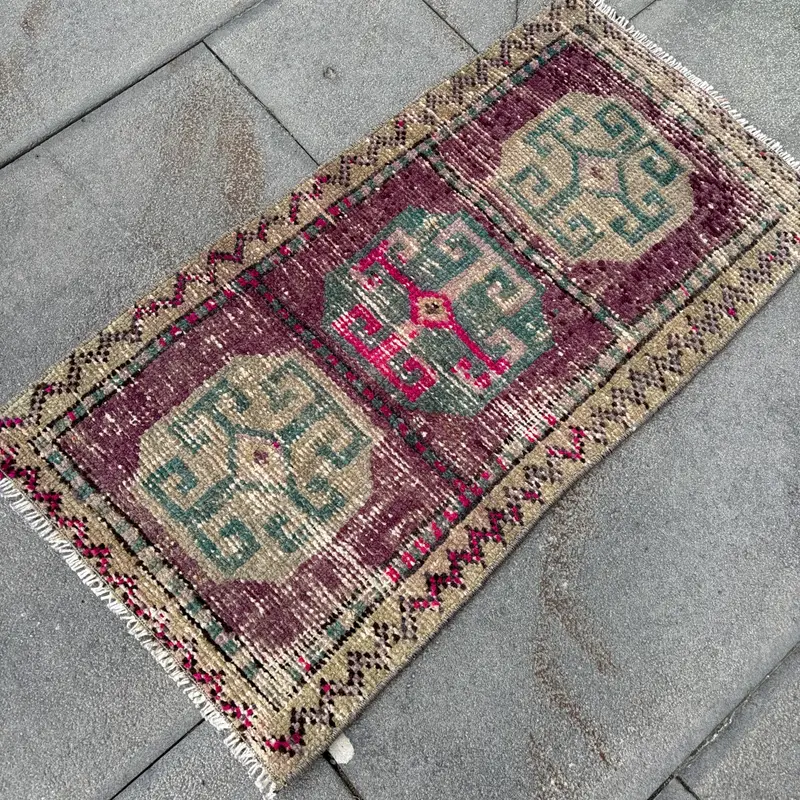 1.5x2.8 ft Vintage Turkish Rug, Small Rug, Red Green Check Wool Rug