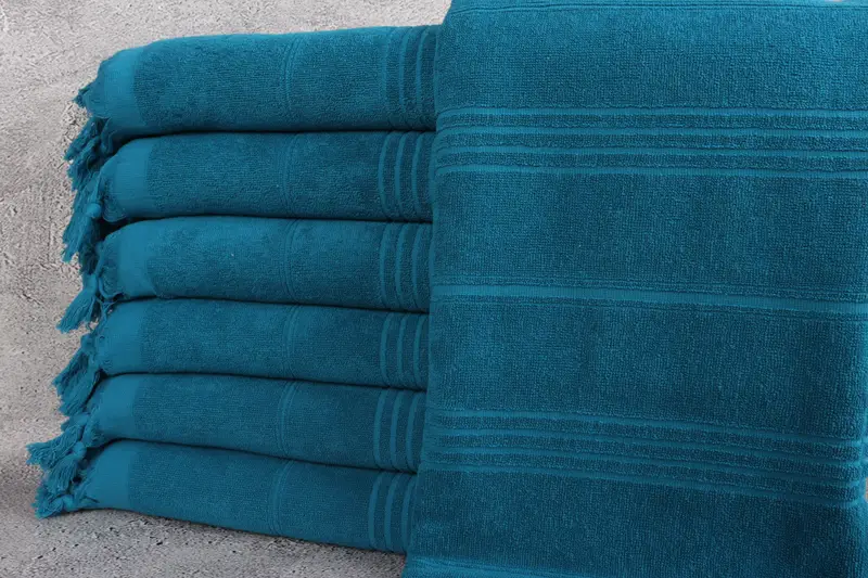Turkish Towel Organic Cotton Striped Beige Terry Towel, 36x71 Inches