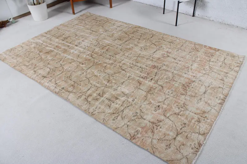 5.2x8 ft Rug, Large Turkish Rug, Brown Solid Rug