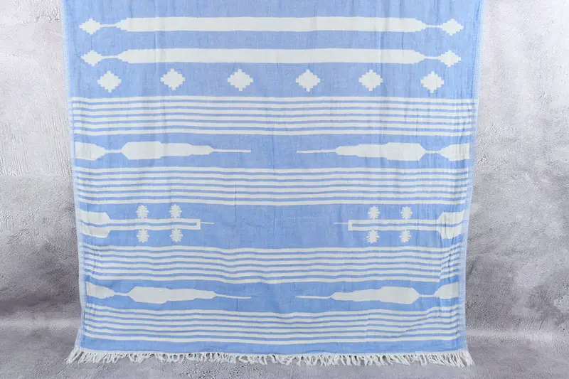 Organic Towel Bath Towel Blue Beige Stripes, 36x69 Inches
