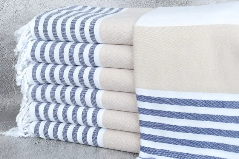 Custom Turkish Towel, Beige-Navy Blue Striped, 40x71 Inches