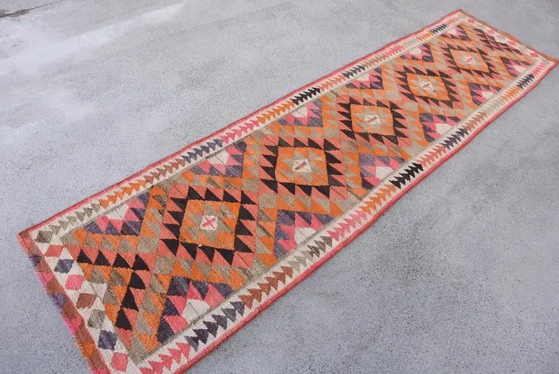 2.4x9.8 ft Turkish Rug, Runner Vintage Rug, Orange Abstract Rug