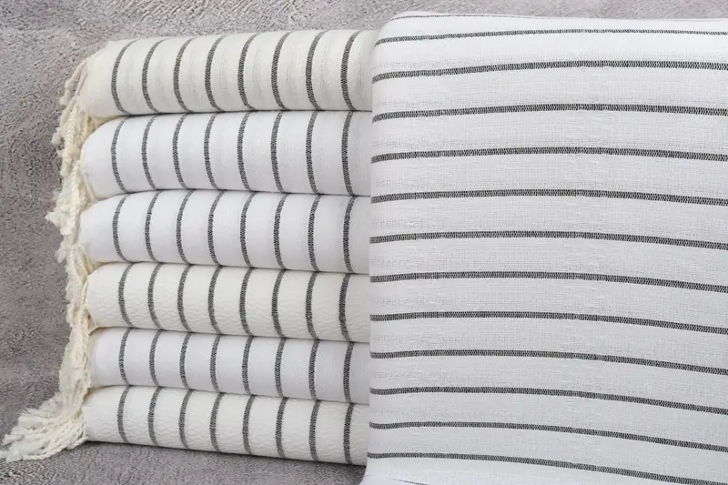Turkish Beach Towel Organic Cotton Black Stripes, Beige, 40x71 Inches