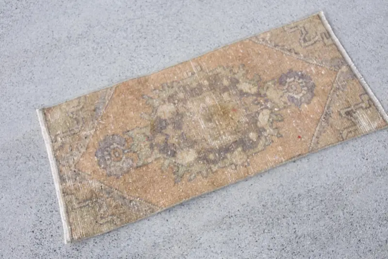 1.2x2.7 ft Vintage Small Rug, Turkish Brown Striped Rug