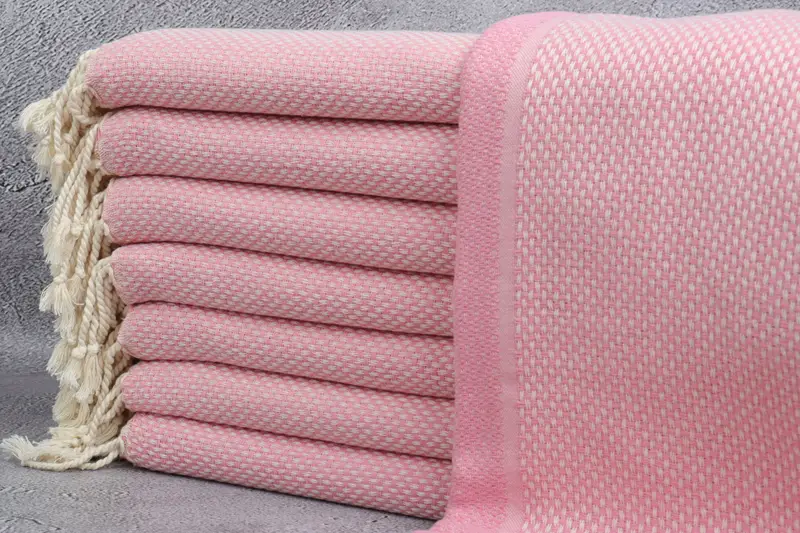 Turkish Towel Beach Geometric Pink Bath Towel, Beige, 38x63 Inches