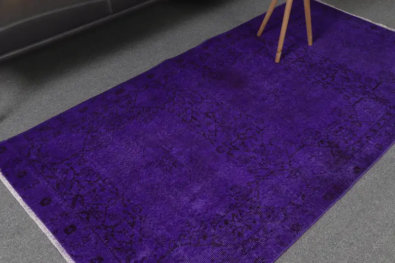 Turkish Vintage Rug, Accent 3.5x6.8 ft (107x208 cm) Rug, Purple Southwestern Wool Rug