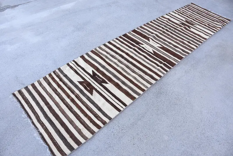 Vintage Turkish Rug, 2.5x10.3 ft Kilim Rug, Brown Runner Plants & trees Rug