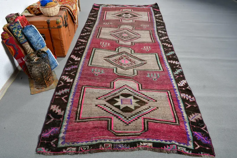 4.6x11 ft Vintage Rug, Rug, Red Animal Print Rug Wool