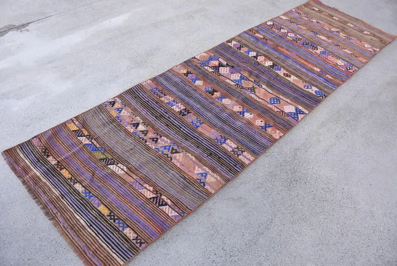3x9.9 ft Turkish Vintage Rug, Runner Rug, Brown Kilim Animal Print Rug