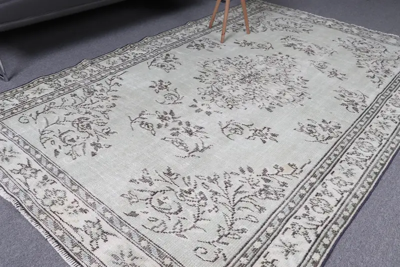 5.5x8.7 ft Turkish Large Rug, Gray Brown Vintage Camouflage Wool Rug