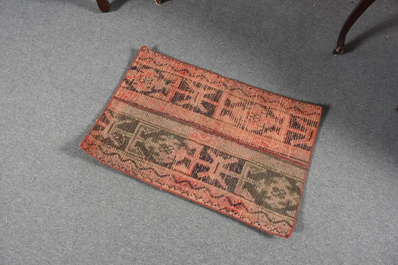 Vintage 1.7x2.5 ft Rug, Turkish Small Rug, Red Solid Rug