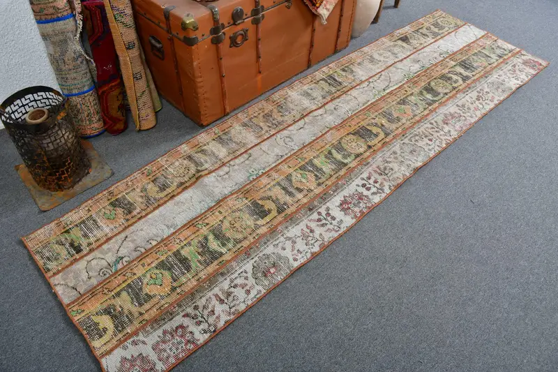 Vintage Rug, 2.3x8.4 ft Runner Turkish Rug, Brown Orange Animal Print Rug