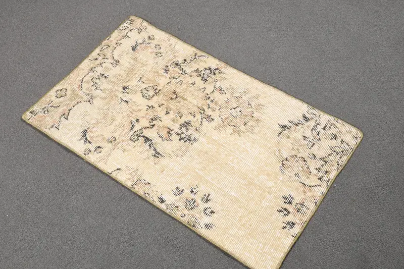 Vintage Turkish Small Rug 1.6x2.8 ft, Beige Moroccan Rug Wool