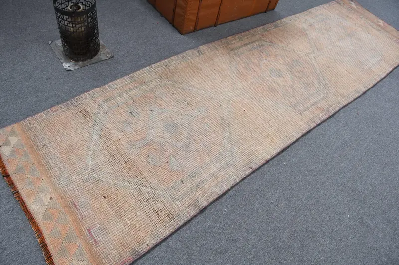 Vintage Turkish Rug, 2.9x10.9 ft Runner Rug, Brown Gray Plants & trees Rug