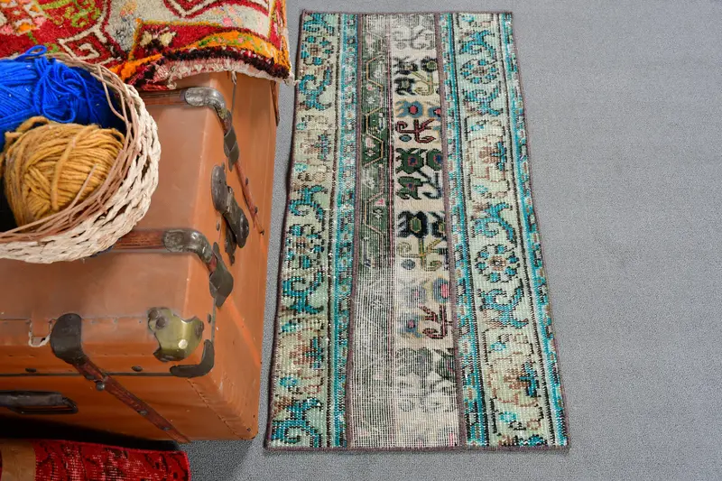 Turkish Vintage Small Rug 1.6x3.3 ft, Blue Ombré Rug Wool