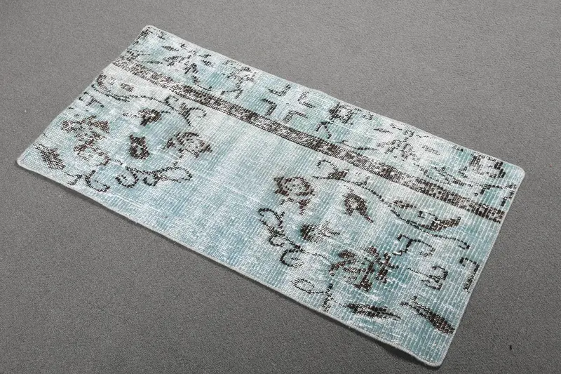 Turkish Vintage Small Rug 1.6x3.3 ft (50x100 cm), Blue Floral Rug