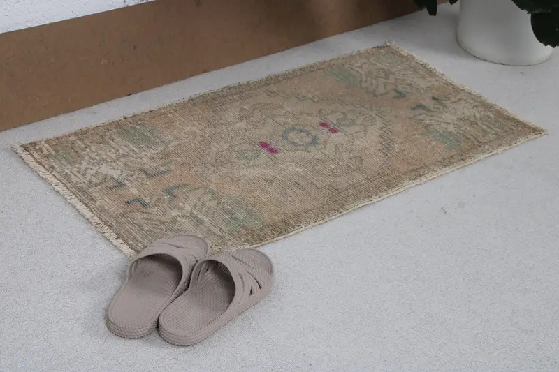 Vintage Rug, 1.6x3.1 ft Small Turkish Rug, Brown Gray Patchwork Rug