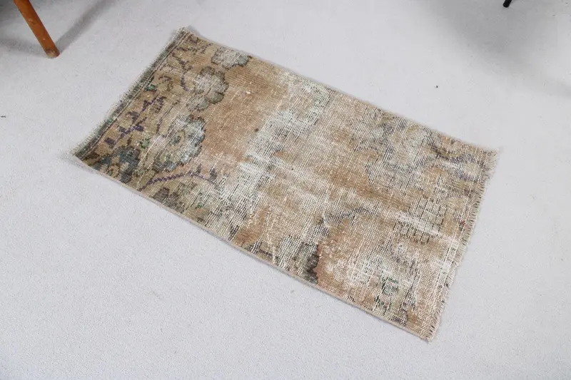Vintage Rug, 1.7x3.2 ft Small Rug, Brown Moroccan Wool Turkish Rug