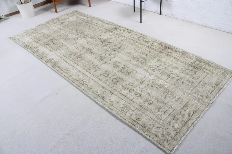 Turkish Rug, Area 3.9x9.2 ft Rug, Gray Persian Rug