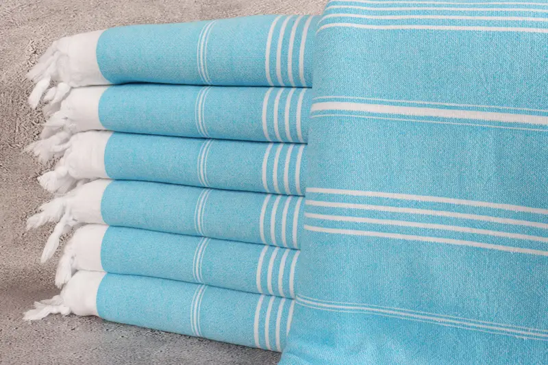Characterized by high-quality, ECO FRIENDLY Premium Turkish Cotton, the towels exhibit superior absorbency and durability. Ensuring longevity, the towels are hand-woven, resulting in a tolerance of 2 inches or 5 centimeters. Dimensions are 36x67 inches or 90x170 centimeters, with a weight of 400 grams.