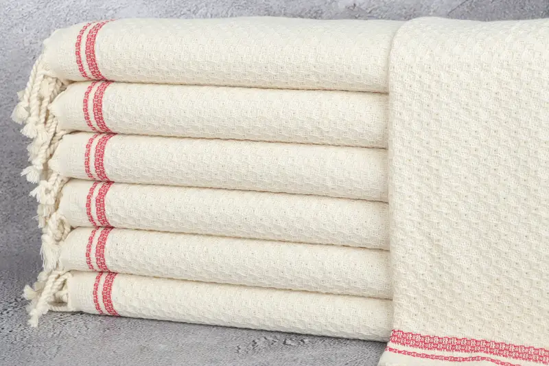 The hand towels are composed of eco-friendly premium Turkish cotton, ensuring high absorbency and durability. Characterized by hand weaving, the towels measure 18x38 inches (45x95 centimeters) and weigh 120 grams, with a tolerance of up to 2 inches or 5 centimeters due to manufacturing variances. Each piece can be customized with embroidery, specifying details such as names or dates in the personalization section during purchase. Pre-shrunk Turkish towels are ready for immediate use, with orders over USD 50 qualifying for free shipping from eit...