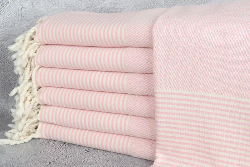 Turkish towels are characterized by their unique fiber composition, utilizing eco-friendly premium Turkish cotton, ensuring enhanced absorbency and durability. Each piece, including beach towels, hand towels, and blankets, maintains a size of 36x71 inches (90x180 centimeters) with a permissible tolerance of 2 inches (5 cm) due to hand-weaving techniques. Resulting in a weight of 380 grams, these towels offer versatility for various home and travel uses.