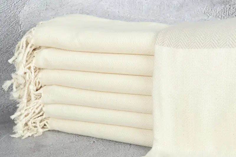 Premium Turkish cotton characterizes the towels, ensuring high absorbency and softness. The dimensions of the beach towel, hand towel, or Turkish blanket are 36x71 inches or 90x180 centimeters, with a slight tolerance of up to 2 inches or 5 centimeters due to hand-weaving techniques. Each towel weighs approximately 400 grams, making it versatile for various uses.