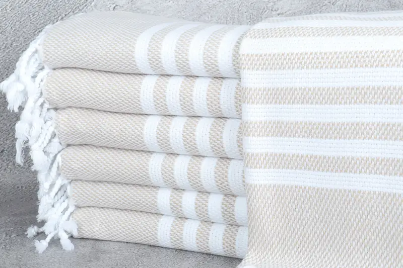 Turkish cotton is renowned for its durability and luxurious feel. Characterized by high absorbency, this material ensures efficient moisture wicking, resulting in towels that dry quickly. These towels are engineered for both sides' use, thanks to their flat-weave construction.