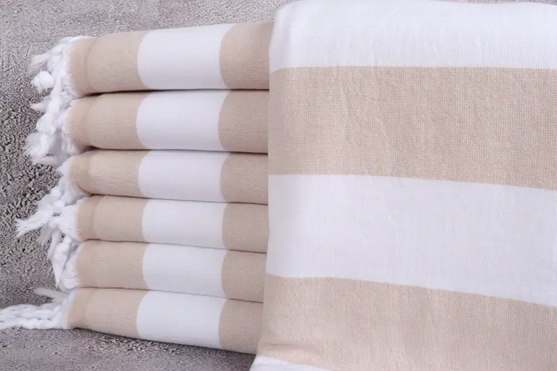 Wholesale Organic Striped Turkish Towel Beige, 36x63 Inches