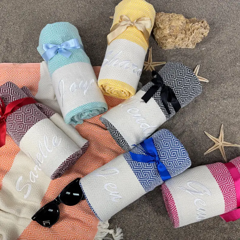 Beach Towel Personalized Turkish Cotton Beige, 40x71 Inches