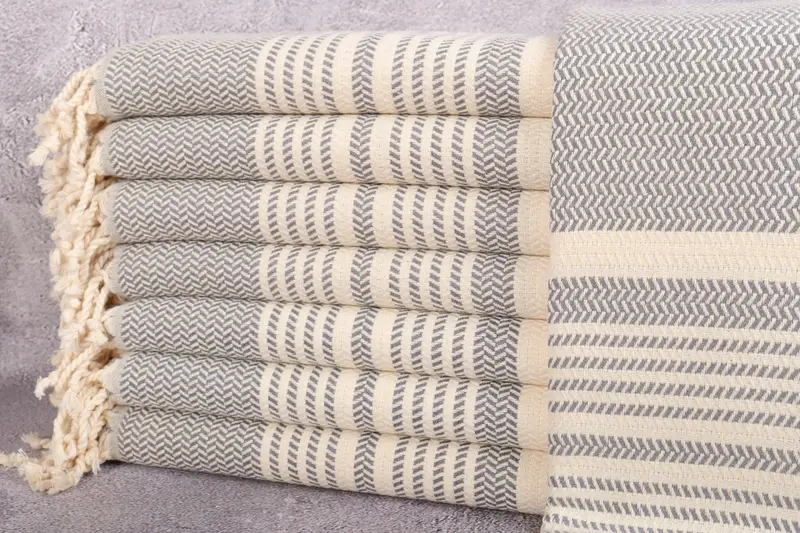 Personalized Organic Striped Beach Towel Beige, 40x71 Inches