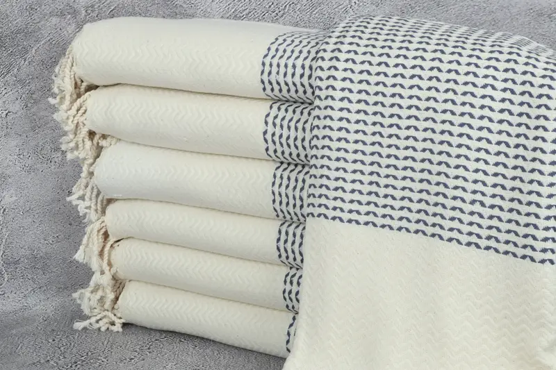 Beach Towel Custom Turkish Cotton Navy Beige, 40x77 Inches