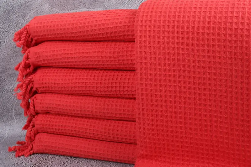 Organic Cotton Beach Towel Red Waffle, 36x67 Inches