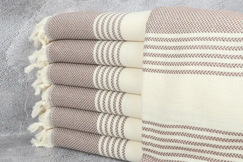 Beach Towel Organic Cotton Dark Brick Stripes, 40x71 Inches