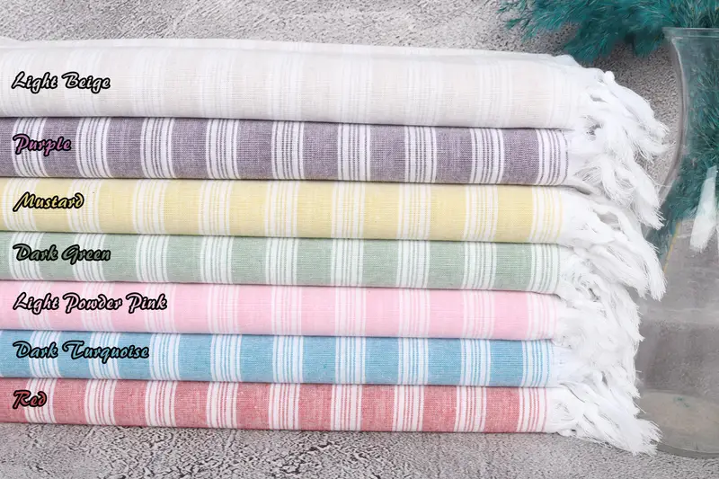 Beach Towel Monogrammed Turkish Cotton Beige Stripes, 40x71 Inches